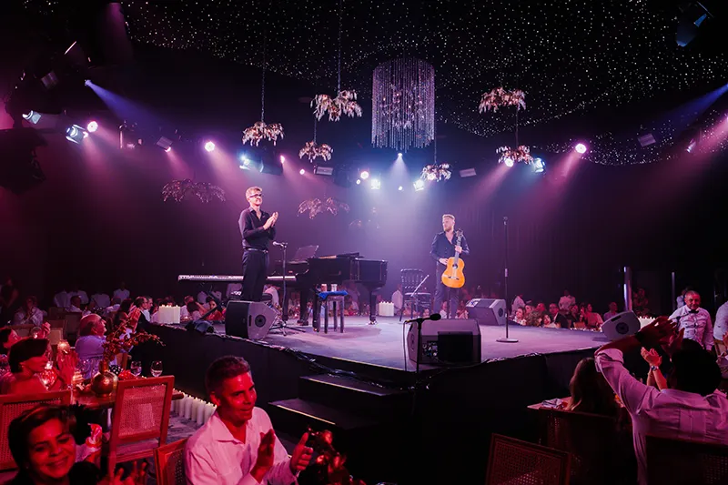 La velada culminó con una espectacular presentación de flamenco protagonizada por el virtuoso del cante, Miguel Poveda, quien llenó el ambiente de pasión desbordante.